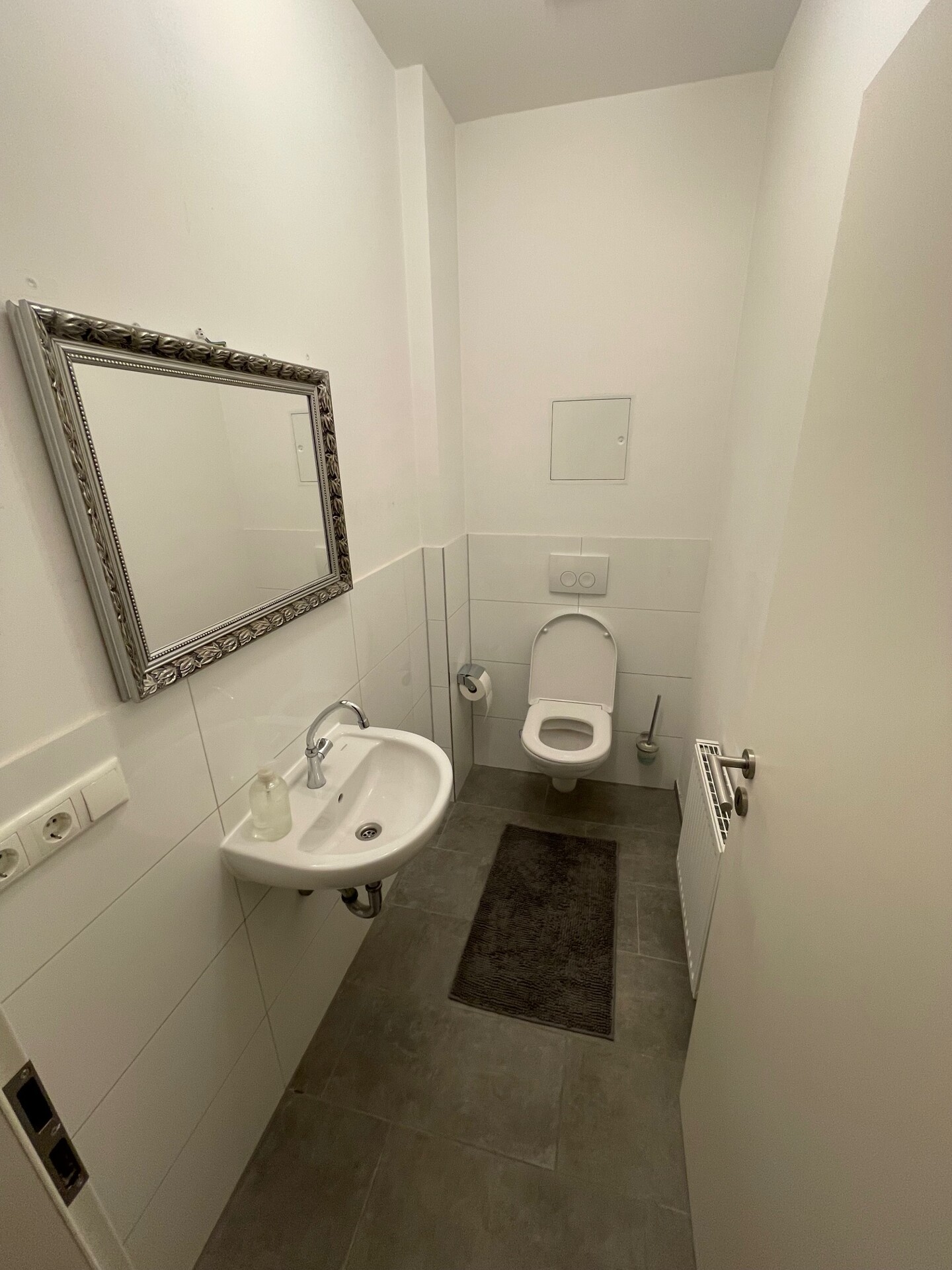 Das Badezimmer ist sowohl mit einer Badewanne als auch mit einer Dusche ausgestattet und verbindet Funktionalität mit Komfort.