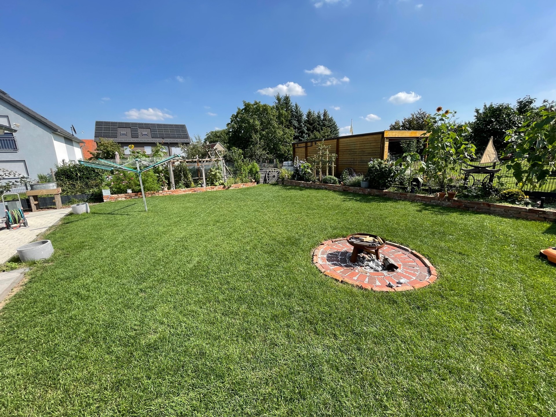 Das ca. 615 m² große Grundstück lädt zum Entspannen und Verweilen ein. Besonders hervorzuheben ist die großzügige Terrasse mit Blick in den gepflegten Garten, auf der Sie den ganzen Tag über die Sonne genießen können – ideal für gemütliche Stunden im Freien, Grillabende oder entspannte Nachmittage.